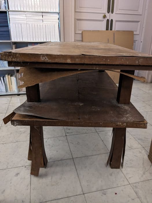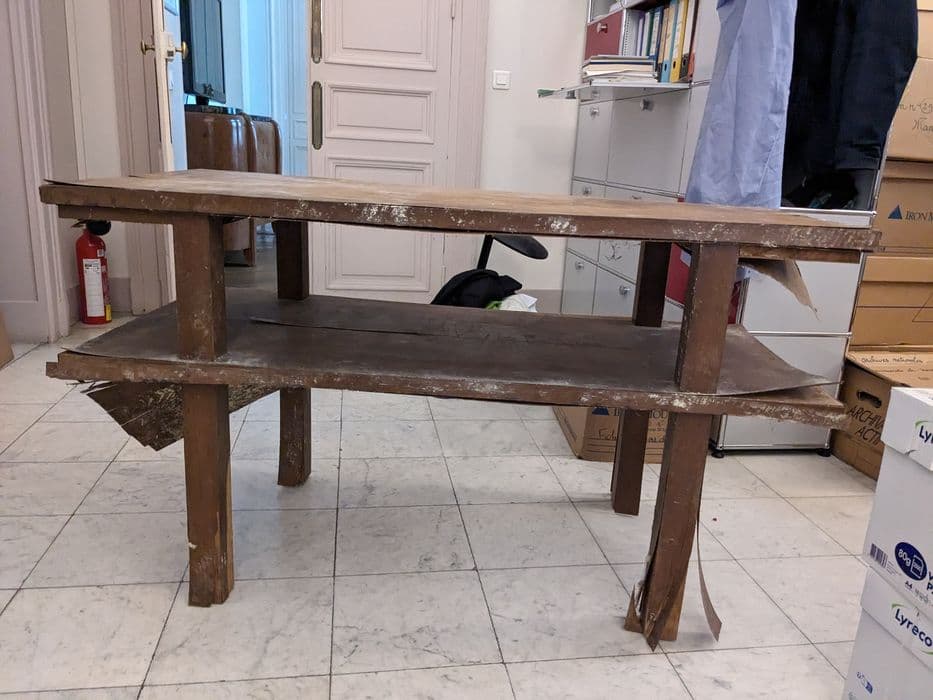 Inventaire 80.M.6. Le plateau du dessus est recouvert d'une vitre.