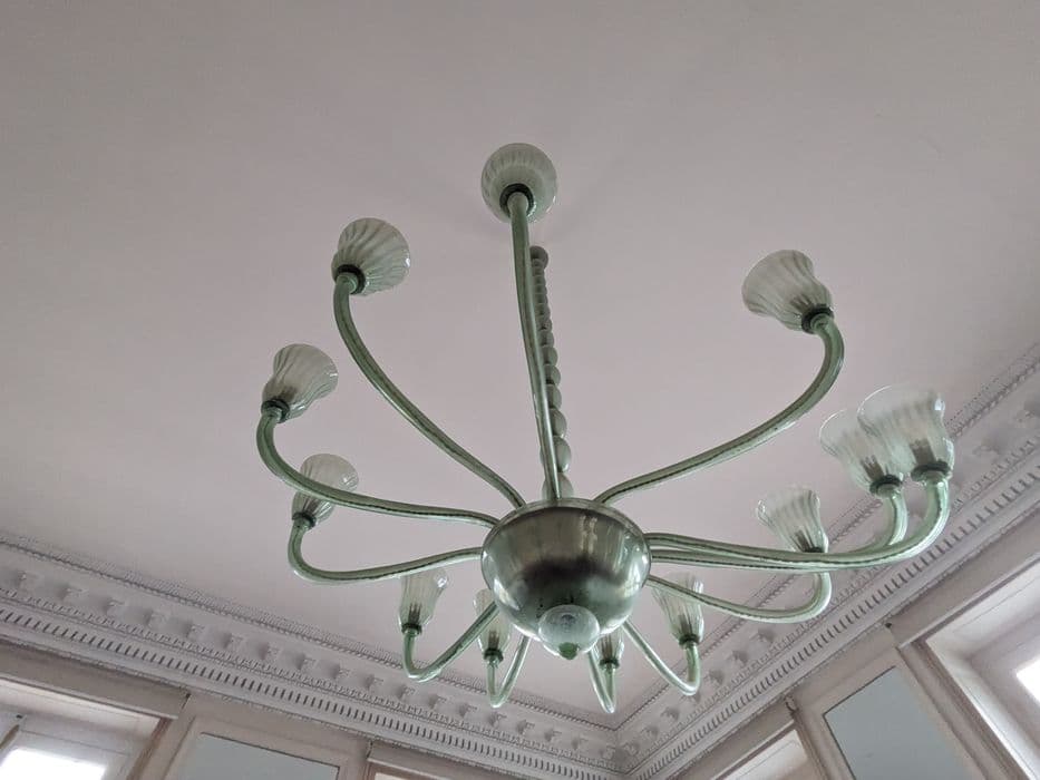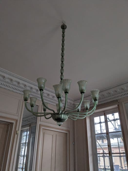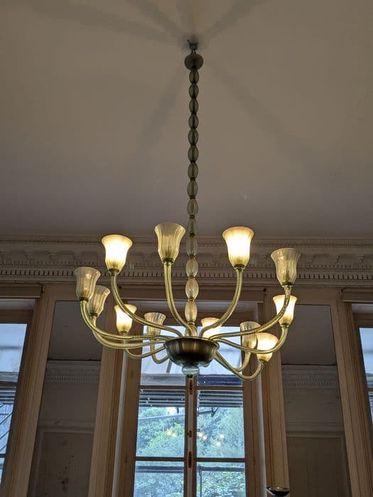Inventaire 80.M.8. Lustre en verre à 12 branches.