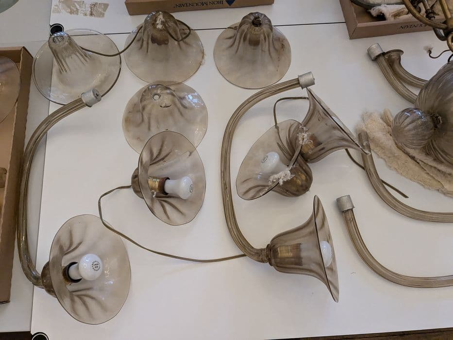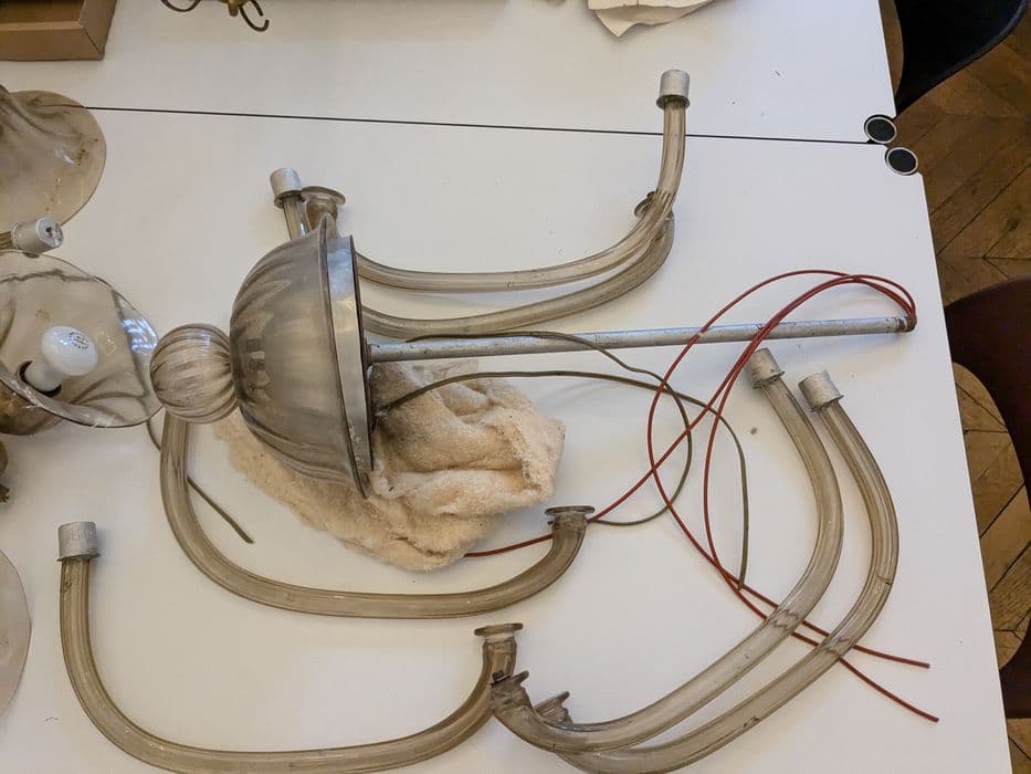 Inventaire 80.M.19. Lustre à 13 branches. Verre coloré, couleur vert d'eau.