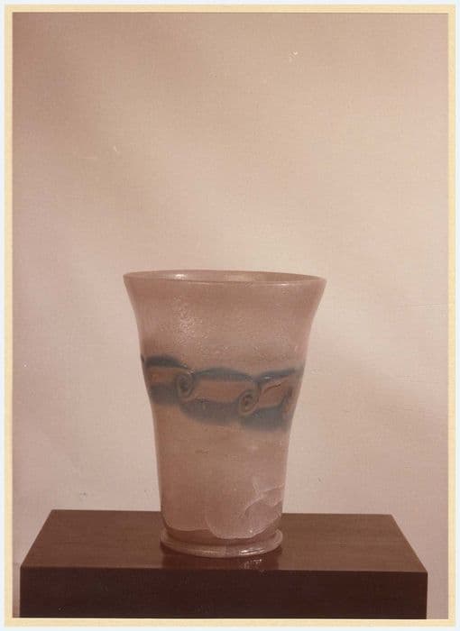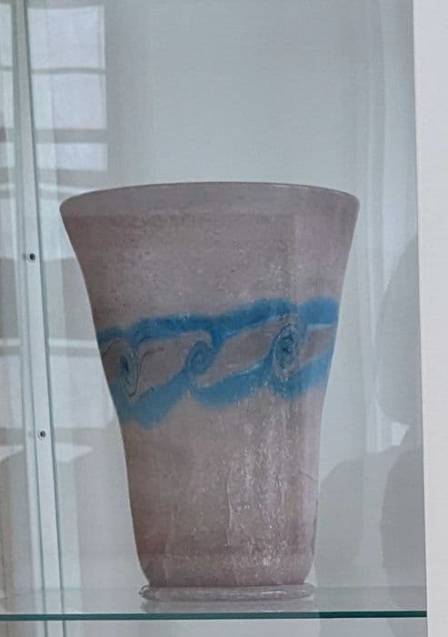 Inventaire 80.M.17 (8). Pâte de verre rose à décor bleu.