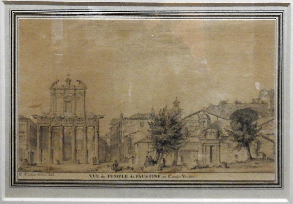 dessin : Vue du temple de Faustina au Campo Vacino