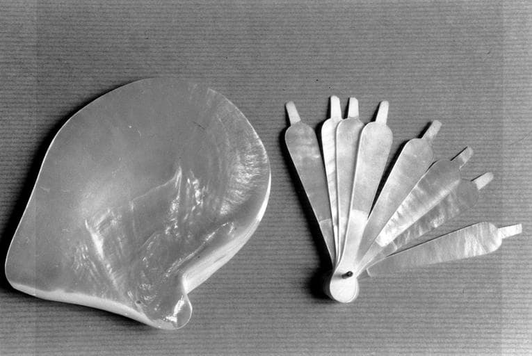 Monture d'éventail, à 8 brins, en nacre blanche.
