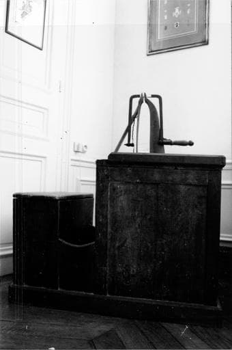 Cet établi, appelé aussi barreau ou âne, fait partie des outils du tabletier, pour les opérations de reperçage et de gravure.