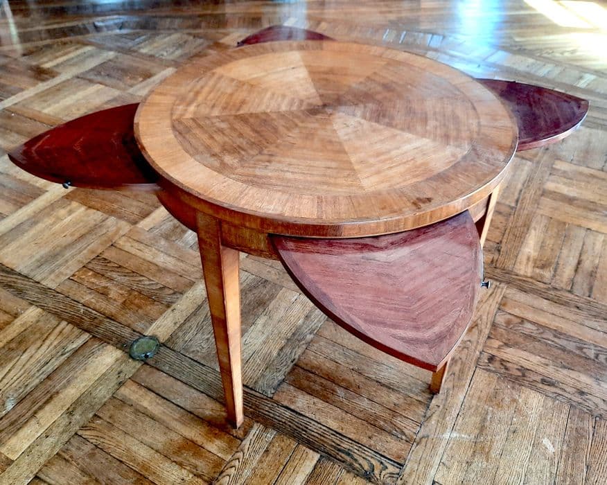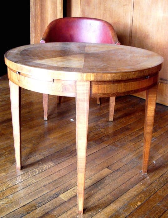 Table de jeux ronde à pétales, bois de Bubinga.