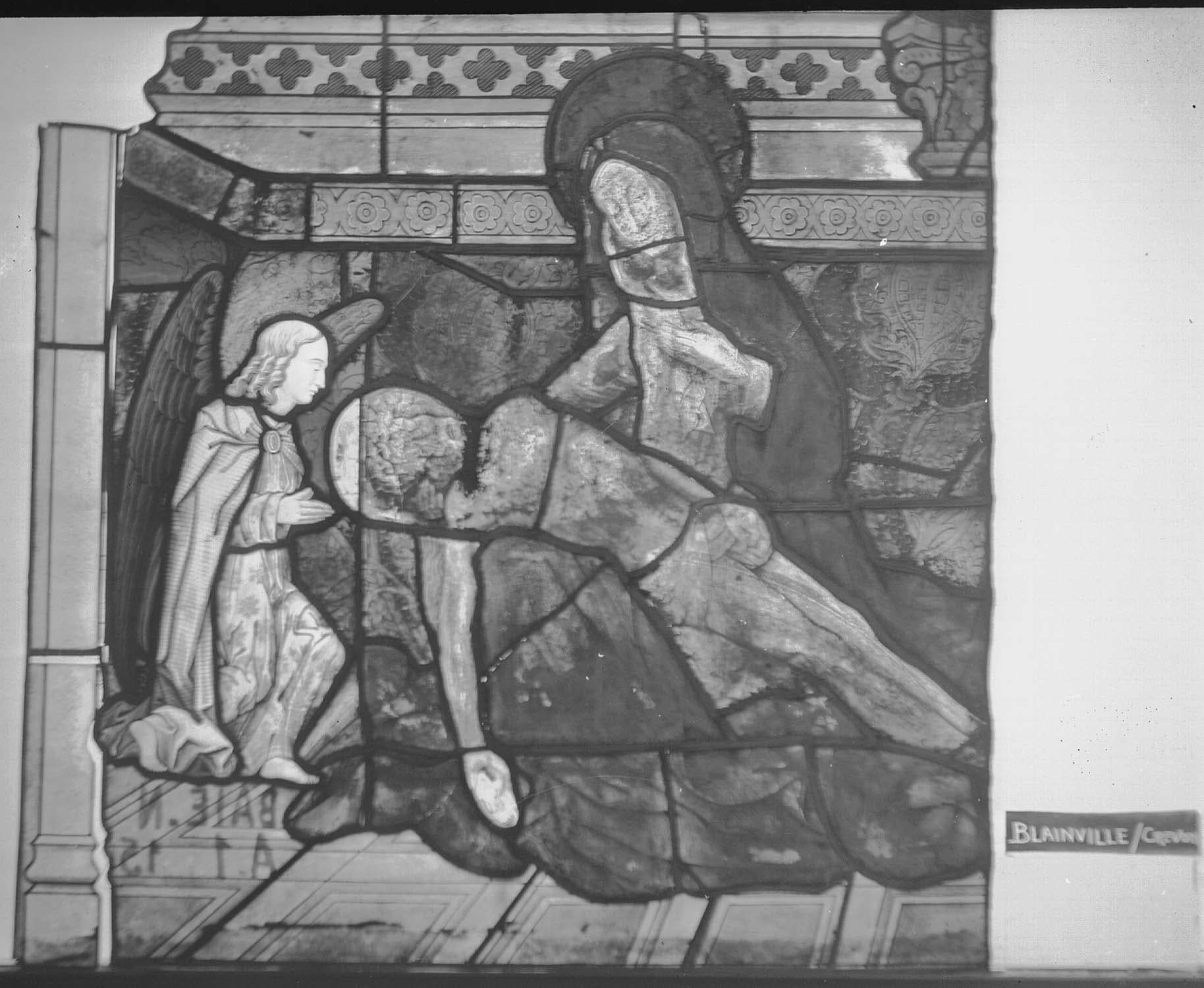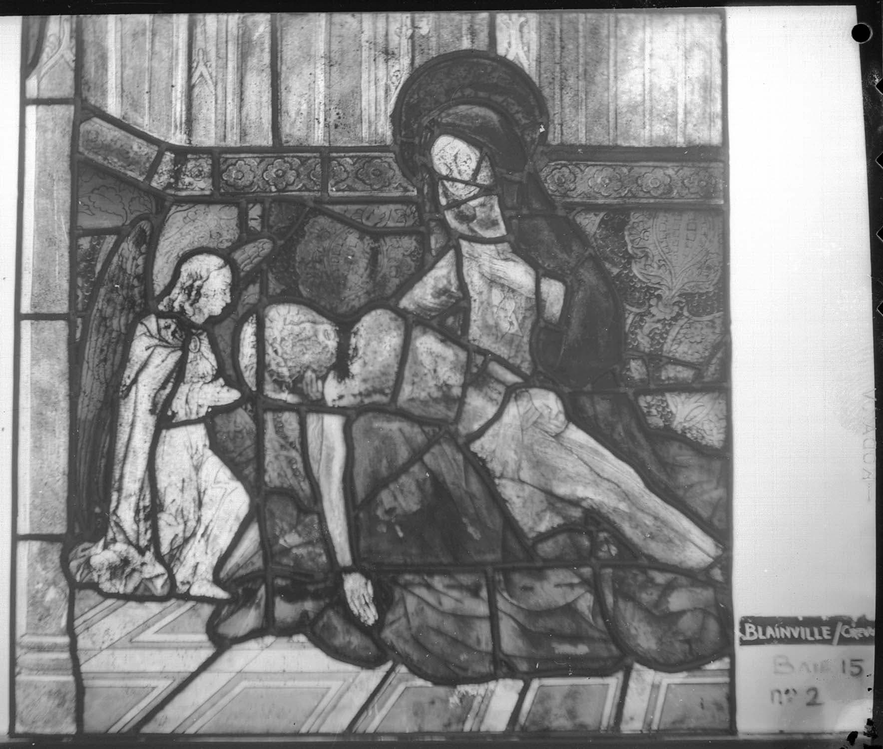 verrière : Vierge de Pitié et donatrice (baie 0)