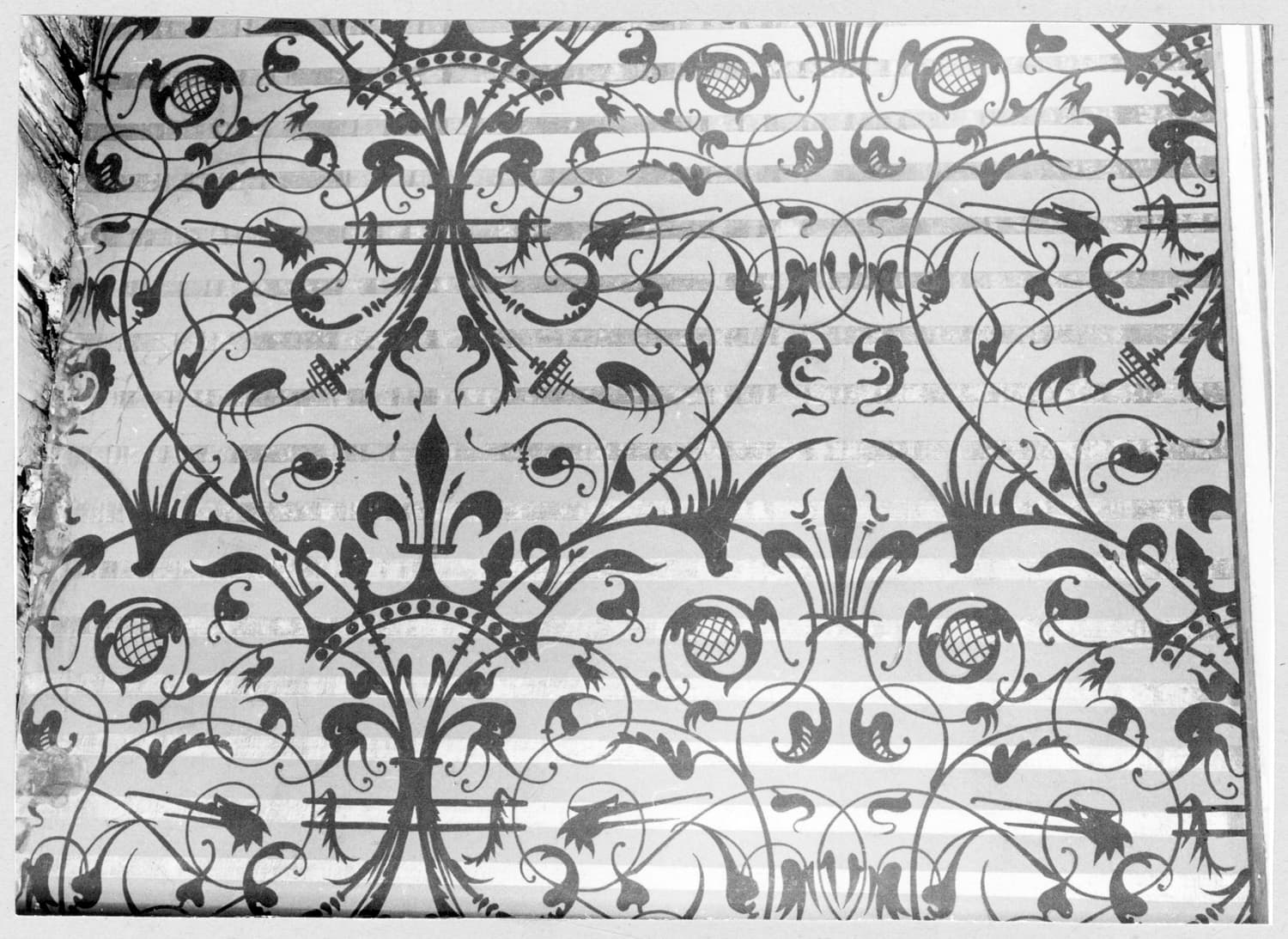 tenture ornée de couronne fleurdelisée, d'arabesques et volutes