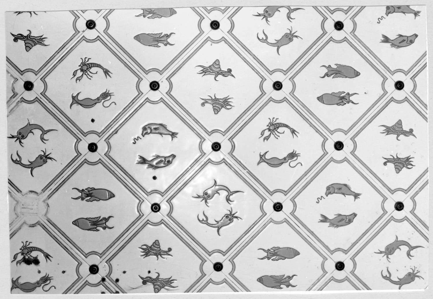 carreaux de faïence décorés d'animaux marin : poisson, pieuvre, écrevisse