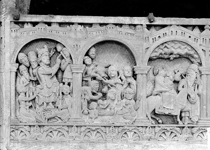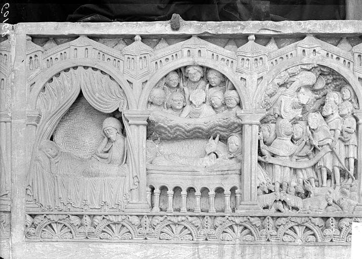 POP | Plateforme ouverte du patrimoinebas-relief : l'Annonciation, la Visitation, la Naissance du Christ, l'Adoration des bergers, l'Adoration des Mages, la Fuite en Egypte, le Baptême du Christ, la Crucifixion, la Résurrection
