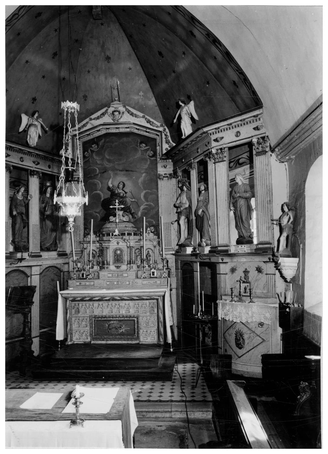 5 statues (grandeur nature) : Sainte Appoline, saint Jacques, Christ aux liens, Vierge à l'Enfant, Vierge