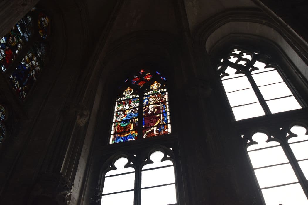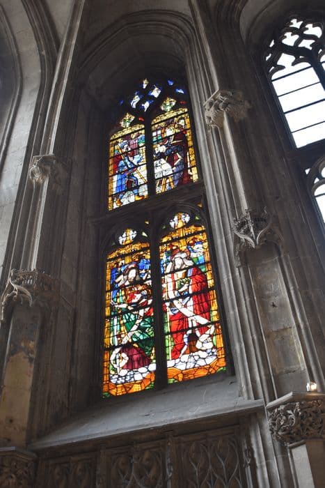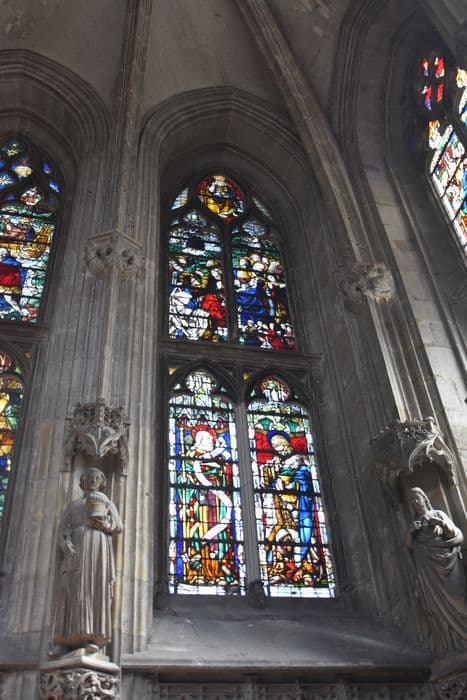 4 verrières de la chapelle Saint-Etienne : saint Pierre, saint André, saint Jacques et saint Jean, le Christ et saint Thomas