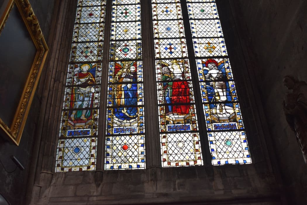 4 verrières de la chapelle Sainte-Agathe : la Vierge, sainte Agathe, saint Sébastien, saint Victor
