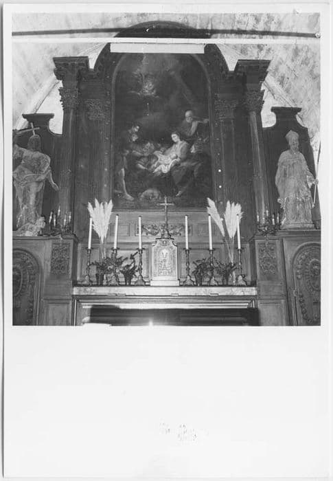 POP | Plateforme ouverte du patrimoineretable du maître-autel, tableau : Adoration des bergers et deux statues : Sainte Marguerite et Saint évêque