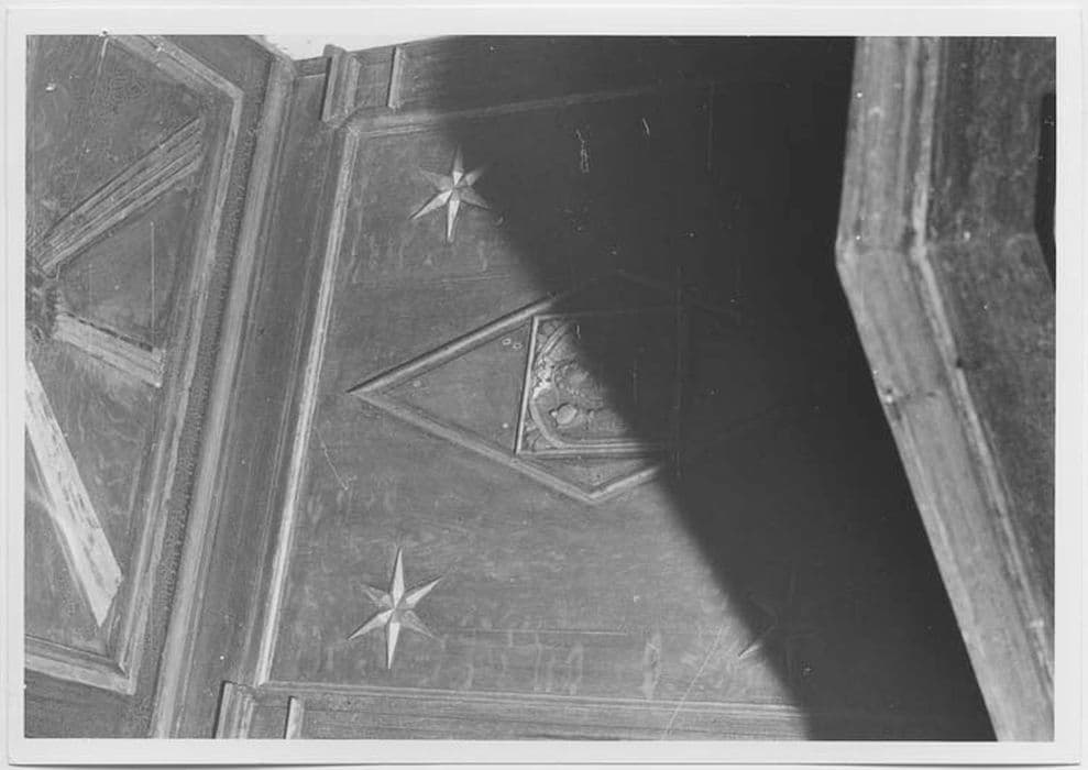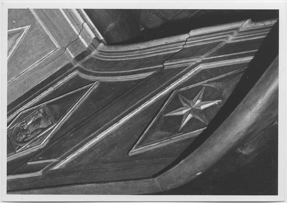 La cuve suspendue est accessible par un escalier tournant, orné de moulures rectangulaires et losangées, rehaussées de dorure et à l'intérieur desquelles des décors en bas-relief présentent des portraits en buste, de style Renaissance (inspiration ou reprise). Il s'agit de saints et saintes représentés avec leurs attributs respectifs ainsi qu'un livre ou une palme. Parmi eux on reconnaît sainte Barbe, saint Jean, sainte Madeleine et sainte Catherine. Le dorsal est orné d'un losange abritant une Vierge à l'Enfant et de quatre étoiles aux angles. L'abat-voix présente une colombe les ailes déployées dans un rayonnement doré : il s'agit d'un décor appliqué. Ce dernier est surmonté de volutes se rejoignant au centre et coiffé d'une croix. La cuve est terminée par une pomme de pin.