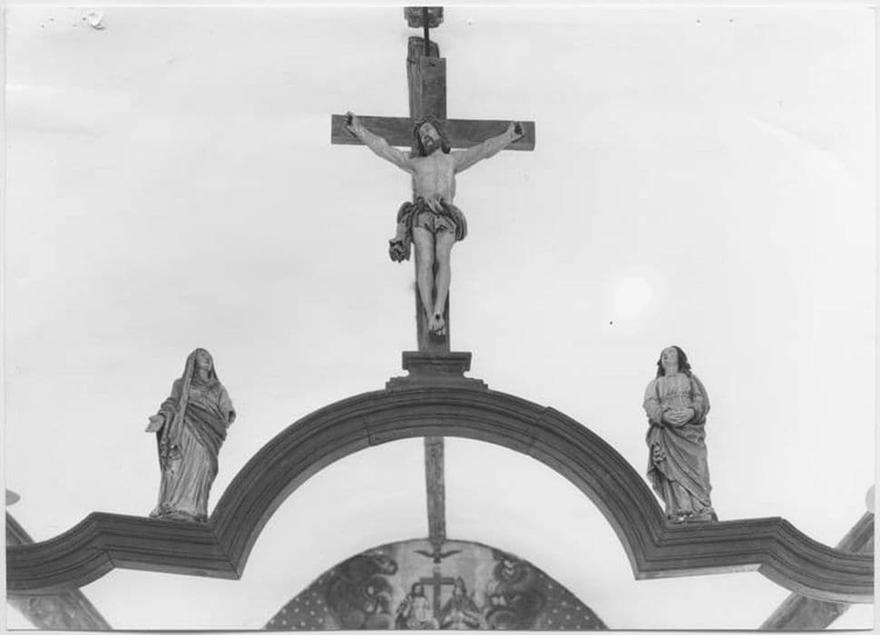 POP | Plateforme ouverte du patrimoinepoutre de gloire, trois statues : Christ en croix, Vierge et Saint Jean