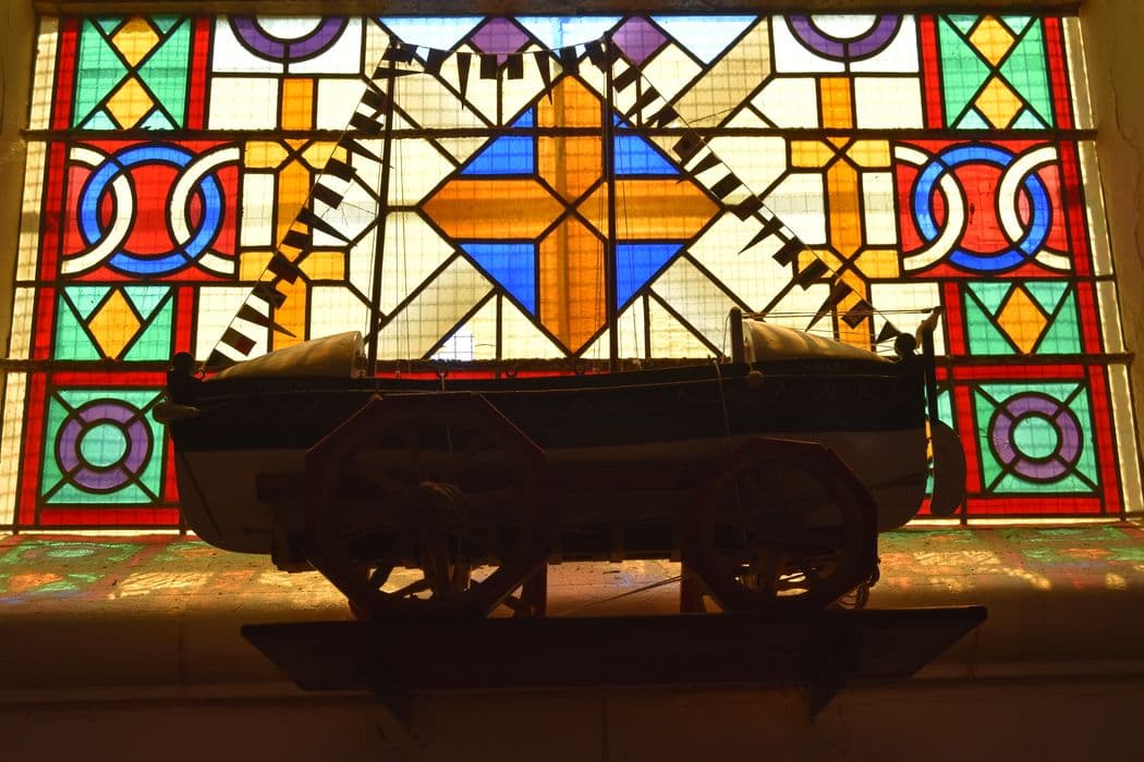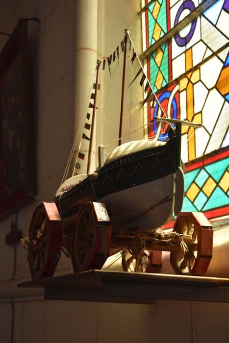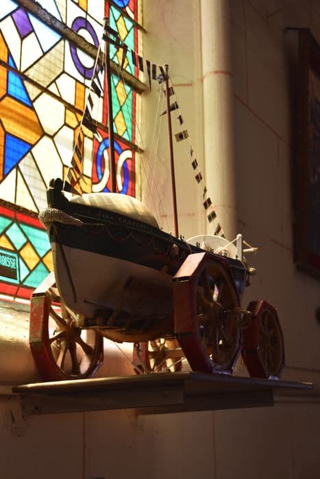 maquette ex-voto d'un bateau de sauvetage dit Jean Charcot Yport, avec son chariot