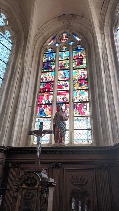 verrière : La Crucifixion, La Mort de la Vierge, La Mise au tombeau