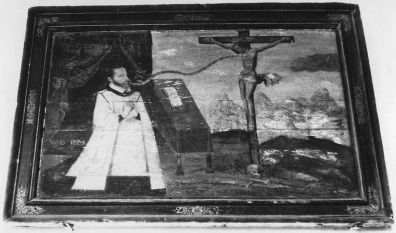 POP | Plateforme ouverte du patrimoinetableau : Dignitaire méditant devant le Christ en croix