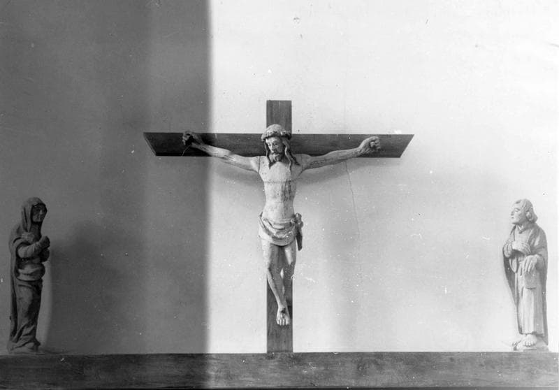 groupe sculpté : Le Christ entre la Vierge et saint Jean