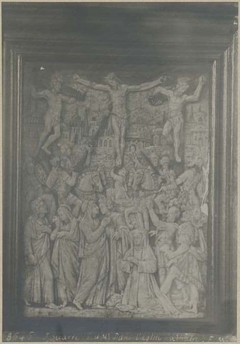 POP | Plateforme ouverte du patrimoinebas-relief : Le Christ en croix entre les deux larrons et une donatrice