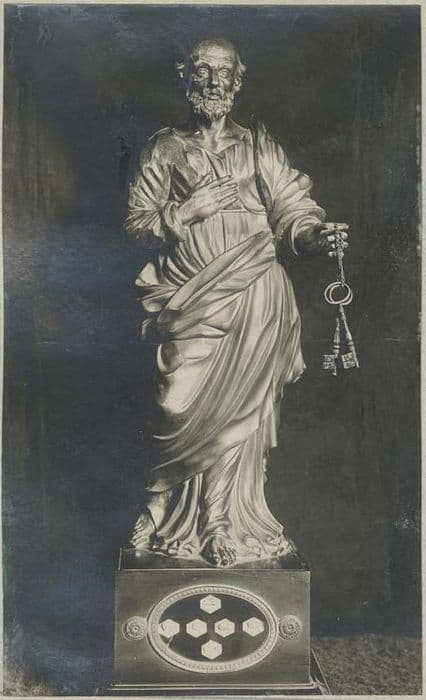 Le médaillon du socle de saint Paul renferme trois reliques de saint Paul, de saint Etienne et de saint Potentien. Le médaillon du socle de saint Pierre renferme, quant à lui, des reliques de saint Martin, saint laurent, sainte Madeleine, sainte Justine et autres. Les clefs que porte saint Pierre sont de véritables clefs pendues à une chaînette.