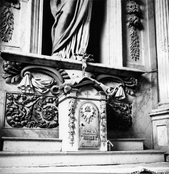 retable : h = 450, la = 410 ; statue : h = 176, la = 74, pr = 50