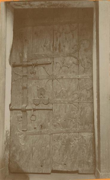 Porte à un vantail muni de vertevelles et de pentures en fer forgé.