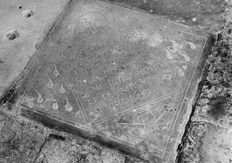 dalle funéraire d'un inconnu mort le 2 avril 1652