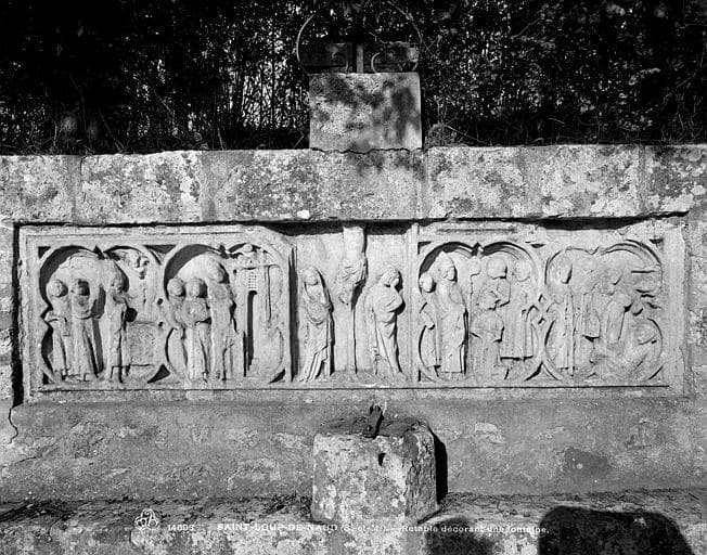 POP | Plateforme ouverte du patrimoinebas-relief dit fontaine de saint Loup : La Crucifixion entre des scènes de la vie de saint Loup