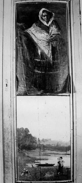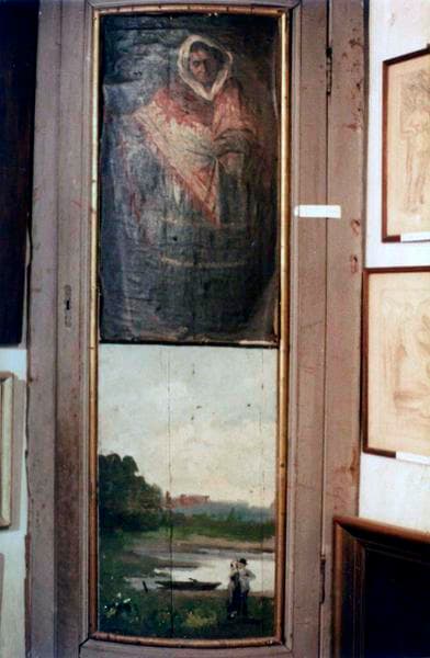 Porte de placard en encoignure avec deux panneaux peints.