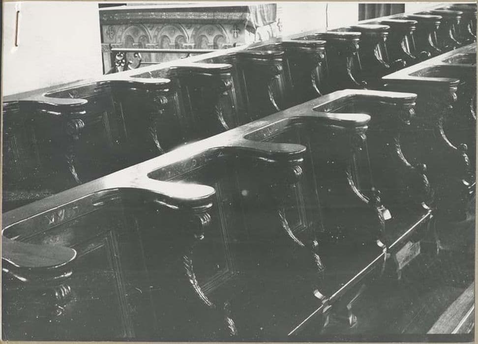 Stalles encadrant la première partie du choeur sur deux rangées.