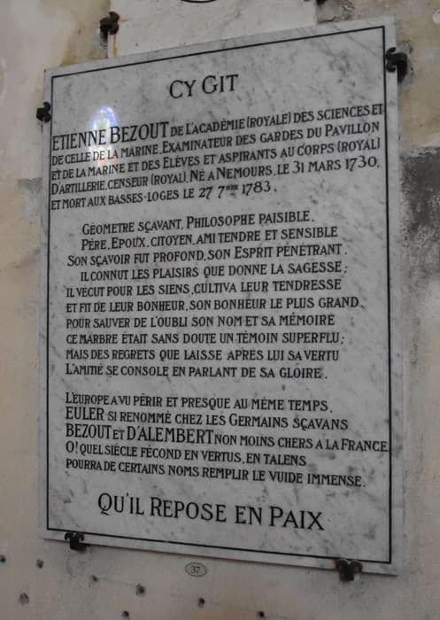 dalle funéraire d'Etienne Bezout