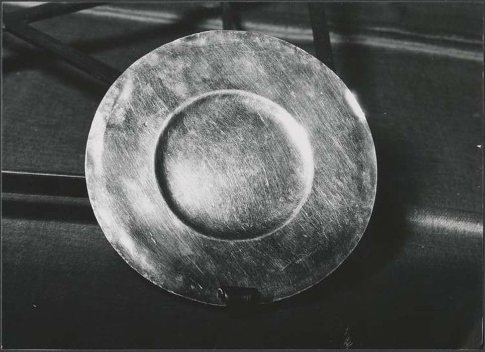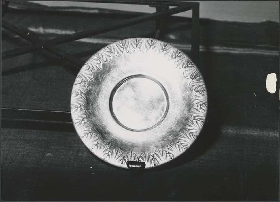 Une patène sans décor, l'autre avec un décor de feuilles sur le pourtour.