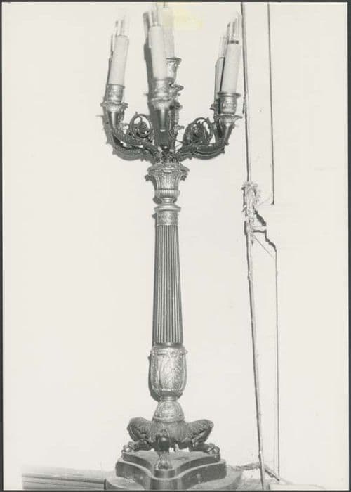 Le socle se constitue de trois pieds en forme de pattes de fauve. La base du faisceau est ornée de palmes et celui-ci est cannelé. En son sommet, chapiteau à palmes s'évasant plus largement. Il comporte sept branches dont une centrale.