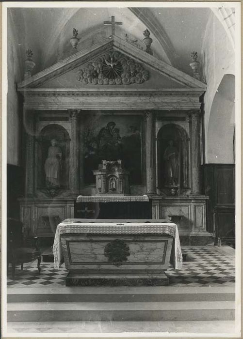 POP | Plateforme ouverte du patrimoineretable du maître-autel, tableau : Vierge à l'Enfant et deux statues : Saint Germain et Saint Vincent