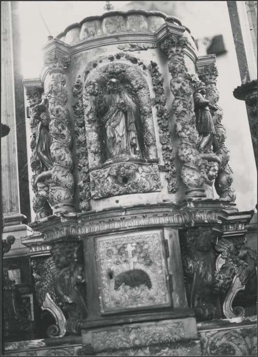 POP | Plateforme ouverte du patrimoineautel (maître-autel), éléments de retable, tabernacle, ses trois statuettes et deux statues : Angelots