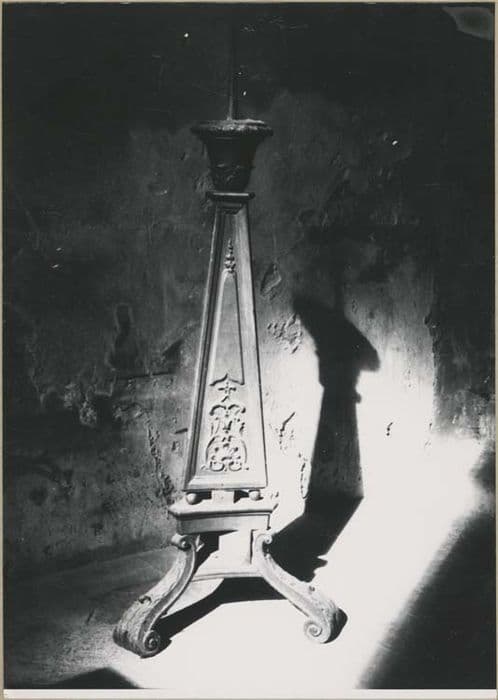 Structure pyramidale à trois faces sur des pieds en volutes recouvertes de feuilles d'acanthe.