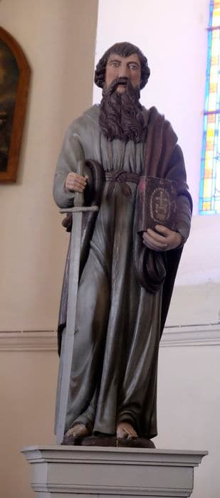 saint Pierre apôtre : clé, livre ; saint Paul de Tarse : épée, livre