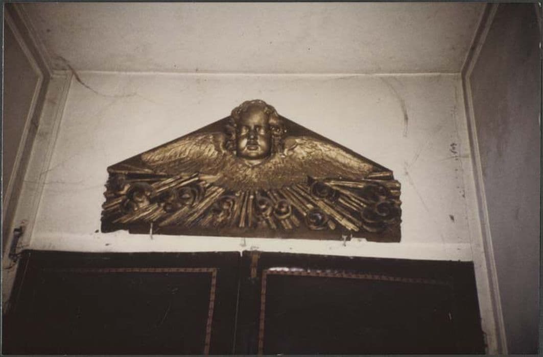 Elément de retable correspondant certainement à un fronton, orné d'une tête d'angelot.