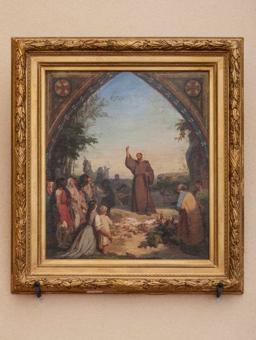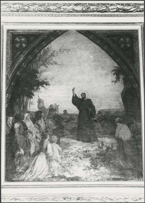 tableau et son cadre : Saint Fiacre prêchant dans la Brie