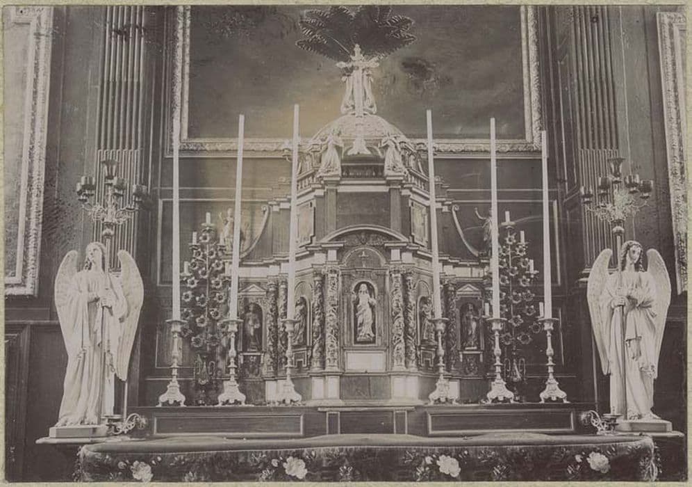 Vol de deux statuettes de bois doré de 0,27 cm de haut, représentant un évêque mitré sans crosse et un ange debout, faisant partie d'un ensemble de petits personnages entourant le tabernacle du maître-autel, constaté le 10/03/1931.