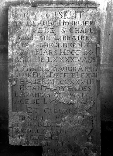 dalle funéraire de Claude Hourlier, veuve de Charles