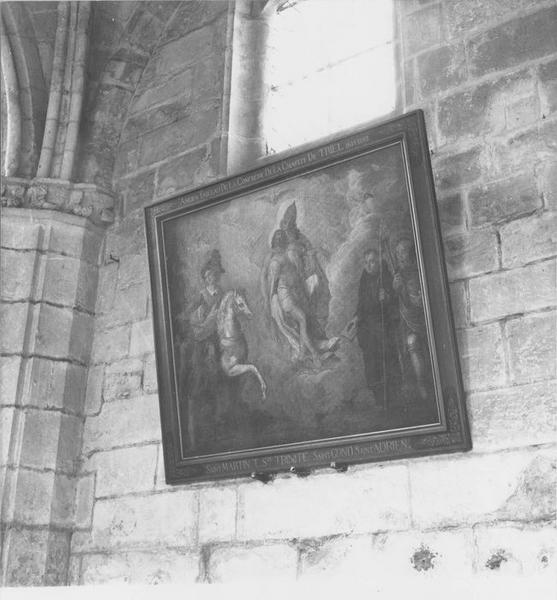 inscription sur le cadre : ANCIEN TABLEAU DE LA CONFRERIE DE LA CHARITE DE TRIEL 1611 1880 SAINT MARTIN STE TRINITE SAINT GOND SAINT ADRIEN