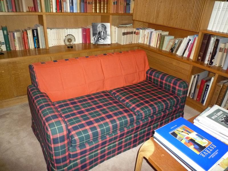 Dans la bibliothèque de la maison.