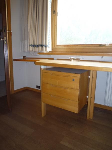 Ce bureau est composé d'un assemblage de trois surfaces asymétriques et d'un bloc de tiroirs suspendus.