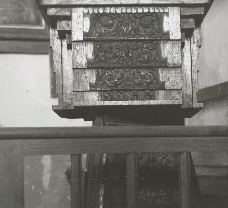 chêne (?) : taillé (décor en bas-relief), ajouré, gravé