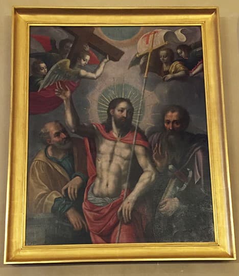 POP | Plateforme ouverte du patrimoinetableau et son cadre : Christ ressuscité entre saint Pierre et saint Paul