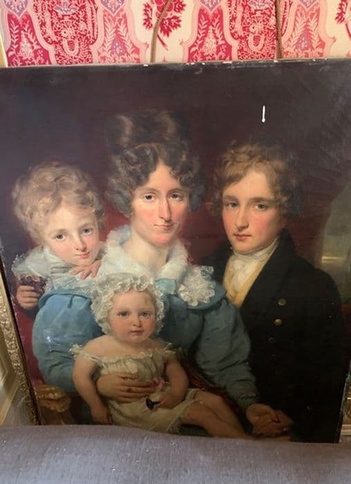 tableau et son cadre : Portrait d'Anastasie Charlotte Macquerel de Pleine-Selve avec trois de ses enfants