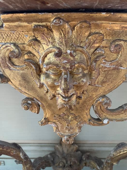Bois doré, plateau en marbre.