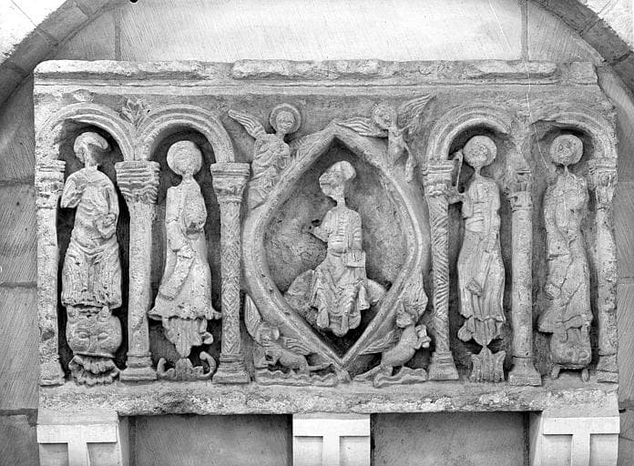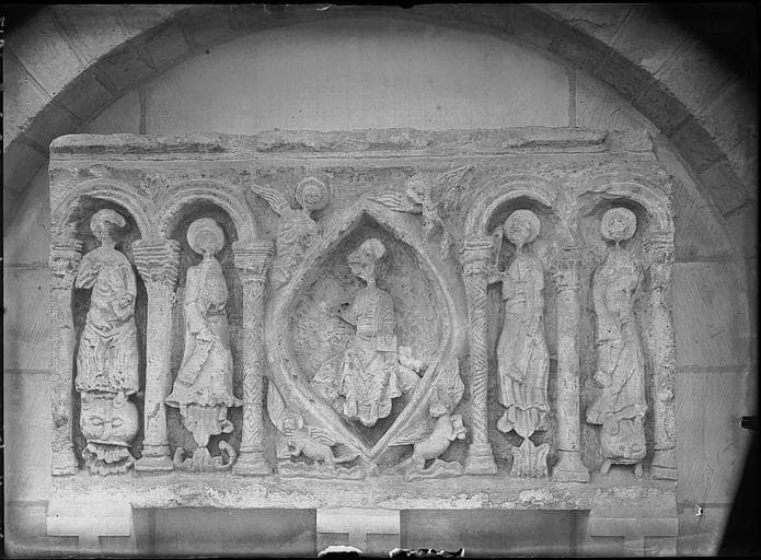 pierre : taillé, décor en relief