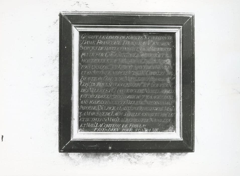 plaque funéraire : épitaphe de Françoise Tiraqueau